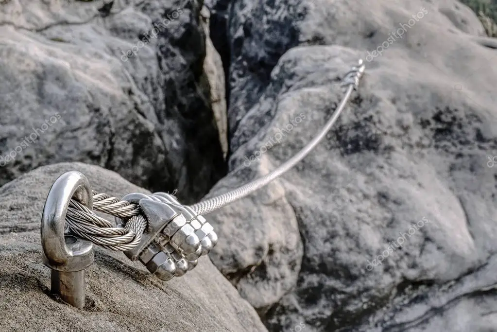 - Grapas, clavos o escalones: Peldaños metálicos fijos a la roca que sirven de agarre para manos y pies.